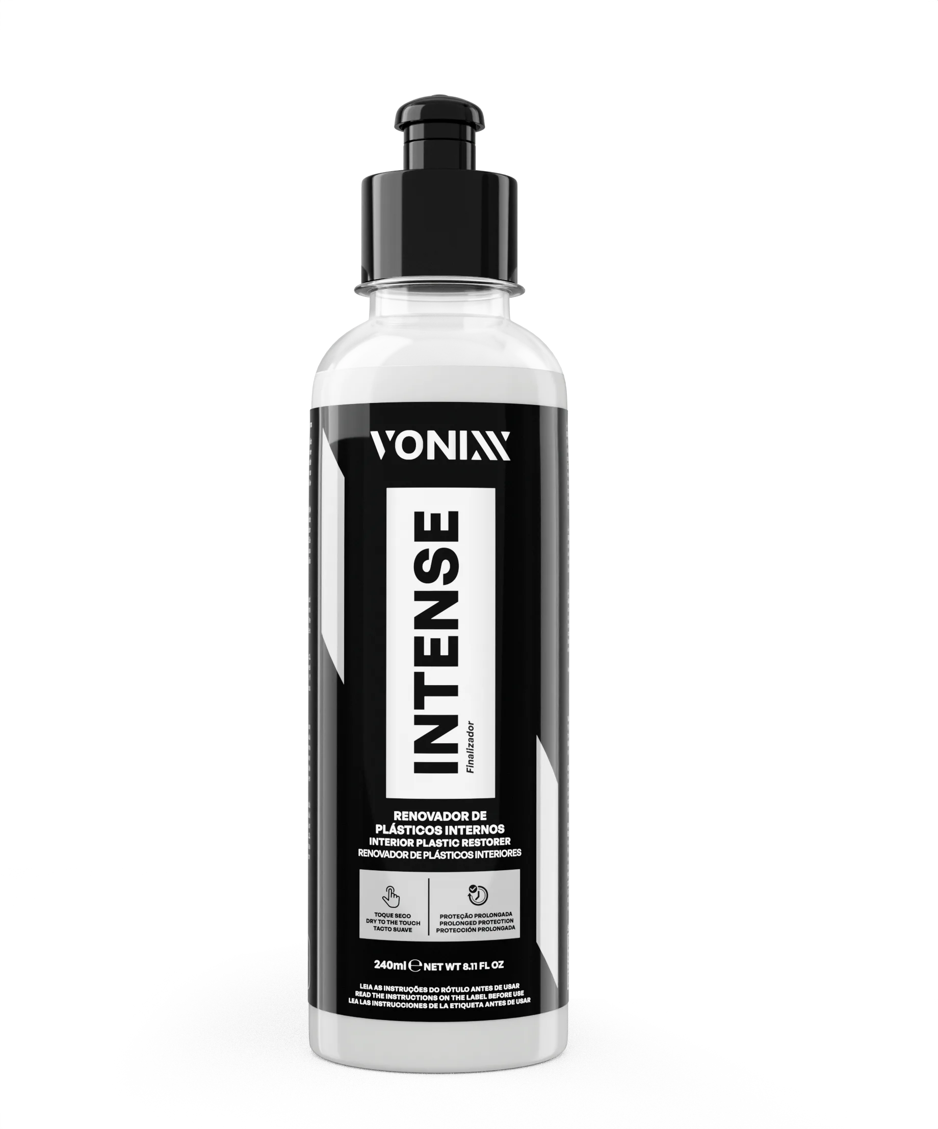 Intense é um renovador de plásticos com proteção UV, de fácil aplicação. Sua fórmula balanceada promove acabamento natural e toque seco, com durabilidade de até 6 meses.